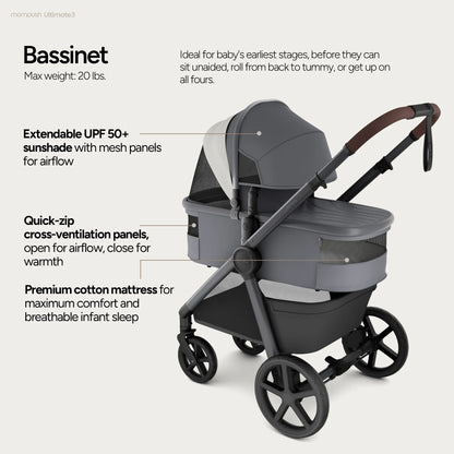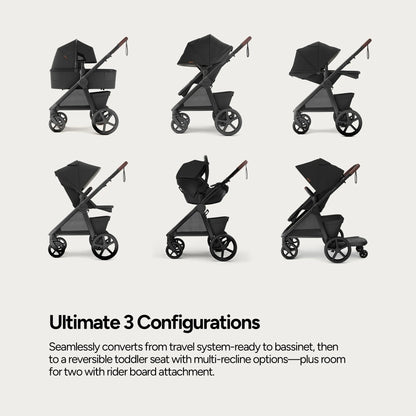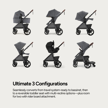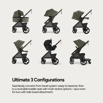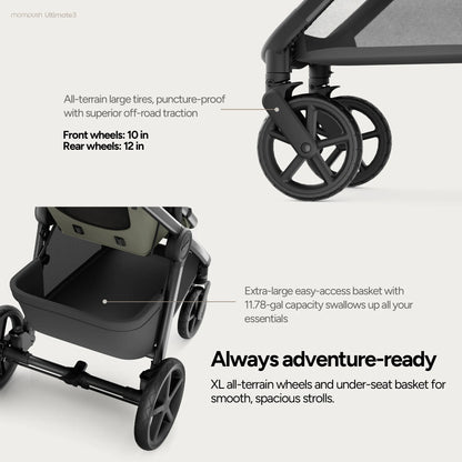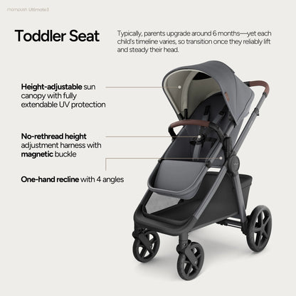 Explore boundless joy in effortless comfort, nurturing your child's growth from newborn to toddler. Sustainably versatile, the Mompush Ultimate 3 is engineered for seamless strolls on any terrain.