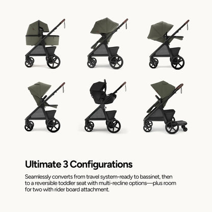 Explore boundless joy in effortless comfort, nurturing your child's growth from newborn to toddler. Sustainably versatile, the Mompush Ultimate 3 is engineered for seamless strolls on any terrain.