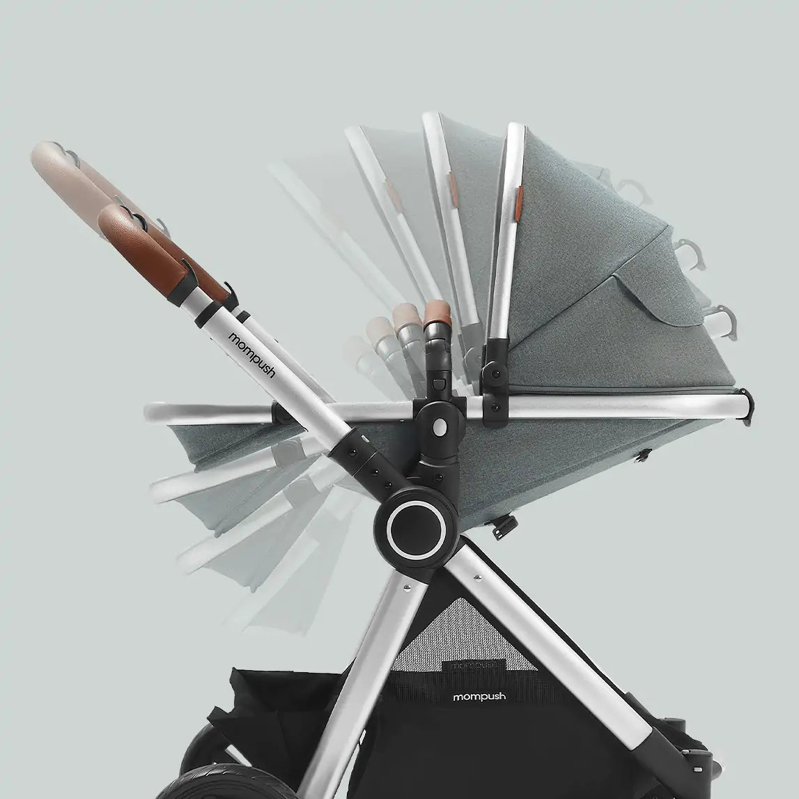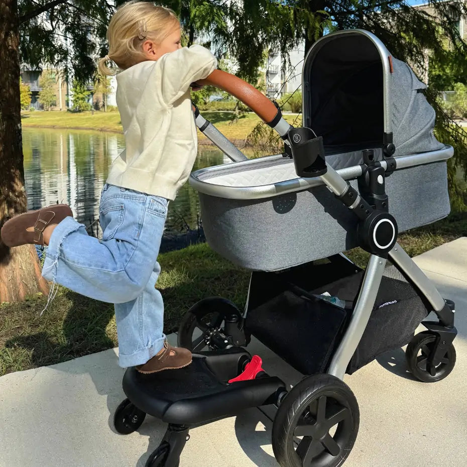 The Mompush Ultimate 2 adapts to your journey, offering versatile modes for every stage. It connects seamlessly with infant car seats for travel, includes an independent bassinet for newborn naps, and supports a rider board for young walkers.